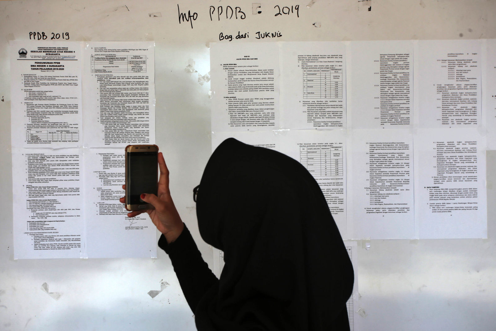 Warga melihat petunjuk teknis PPDB SMA di SMA 4 Kota Solo (Solopos)