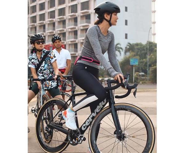 Pada foto yang diunggah kali ini, Pevita Pearce terlihat mengenakan pakaian khusus sepeda berwarna cokelat.