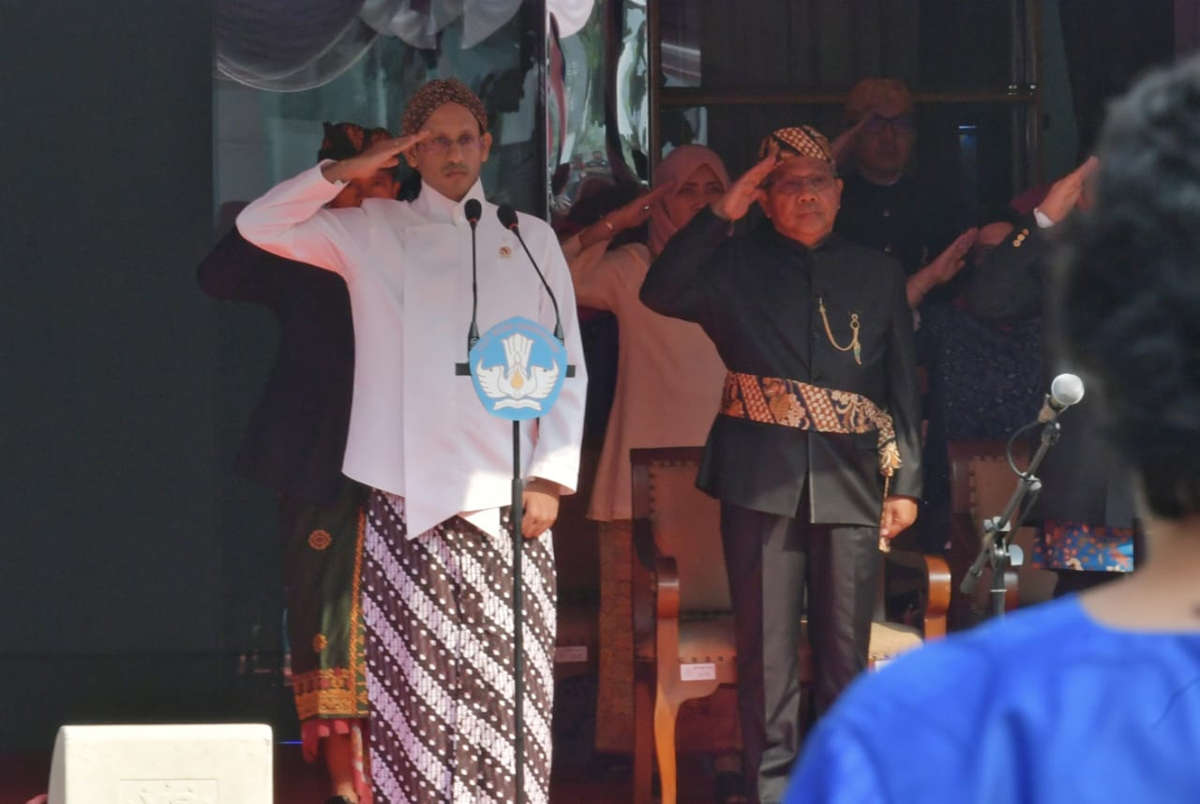 Mendikbud Nadiem Makarim saat memimpin upacara Hari Sumpah Pemuda (Kemdikbud)
