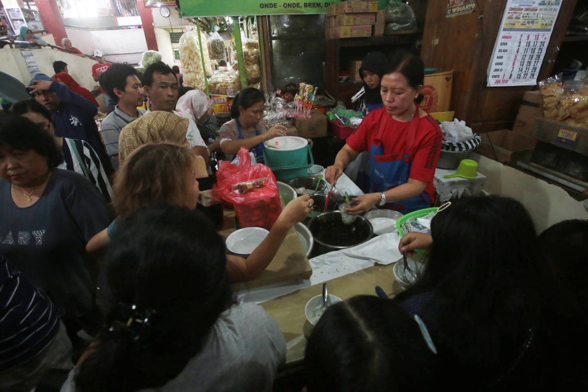 Pengunjung menikmati dawet telasih di Pasar Gede Solo (Solopos)