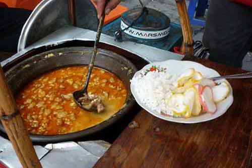 Air kuah gulai itu akan mengguyur ke piring berisi nasi. Tidak lupa pula bumbu penyedap rasa, kecap, sambal secukupnya, bawang goreng, dan kerupuk. Pembeli biasanya sudah mengantre akan lahap menyantap gulai yang berasal dari Solo itu.