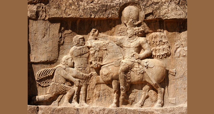 Relief batu Valerian Shapur persia kuno yang dipercaya pada masa King of the Kings. (Istimewa/The Britannica)