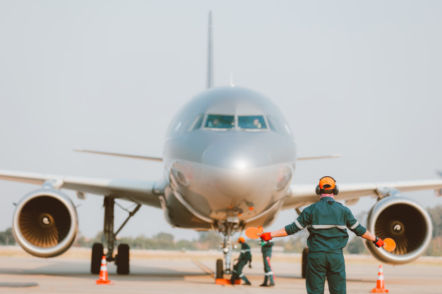 Tugas tukang parkir pesawat adalah memandu pilot (Freepik)