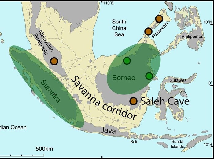Fakta: Sundaland menurut sejumlah penelitian yang dipublikasikan jurnal Nature adalah padang savana. Dataran yang lebih tinggi adalah hutan. Sisi selatan Sundaland adalah jejeran gunung berapi yang sekarang menjadi Sumatra dan Jawa.