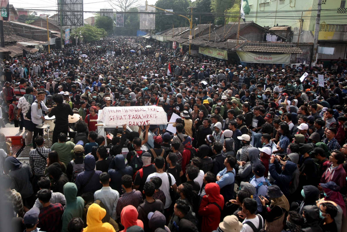 Aksi #GejayanMemanggil diikuti ribuan orang yang terdiri atas mahasiswa dari berbagai kampus dan elemen warga di DIY. Mereka berkumpul di simpang tiga Jl. Colombo, Gejayan, Condong Catur, Sleman, DIY.