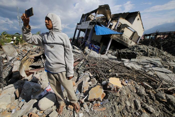 Dampak bencana tsunami Selat Sunda 2018 yang ditakutkan bakal terulang di tempat lain 2020. (Aron Favila/ABC.net.au)