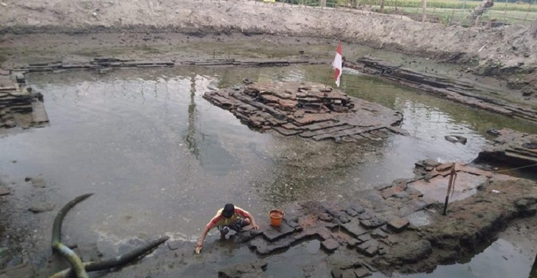 Sebelumnya, petirtaan suci Majapahit ini ditemukan warga pada 9 September 2019 lalu. Warga Dusun Sumberbeji digegerkan penemuan arca Jaladwara yang berbentuk kepala garuda.